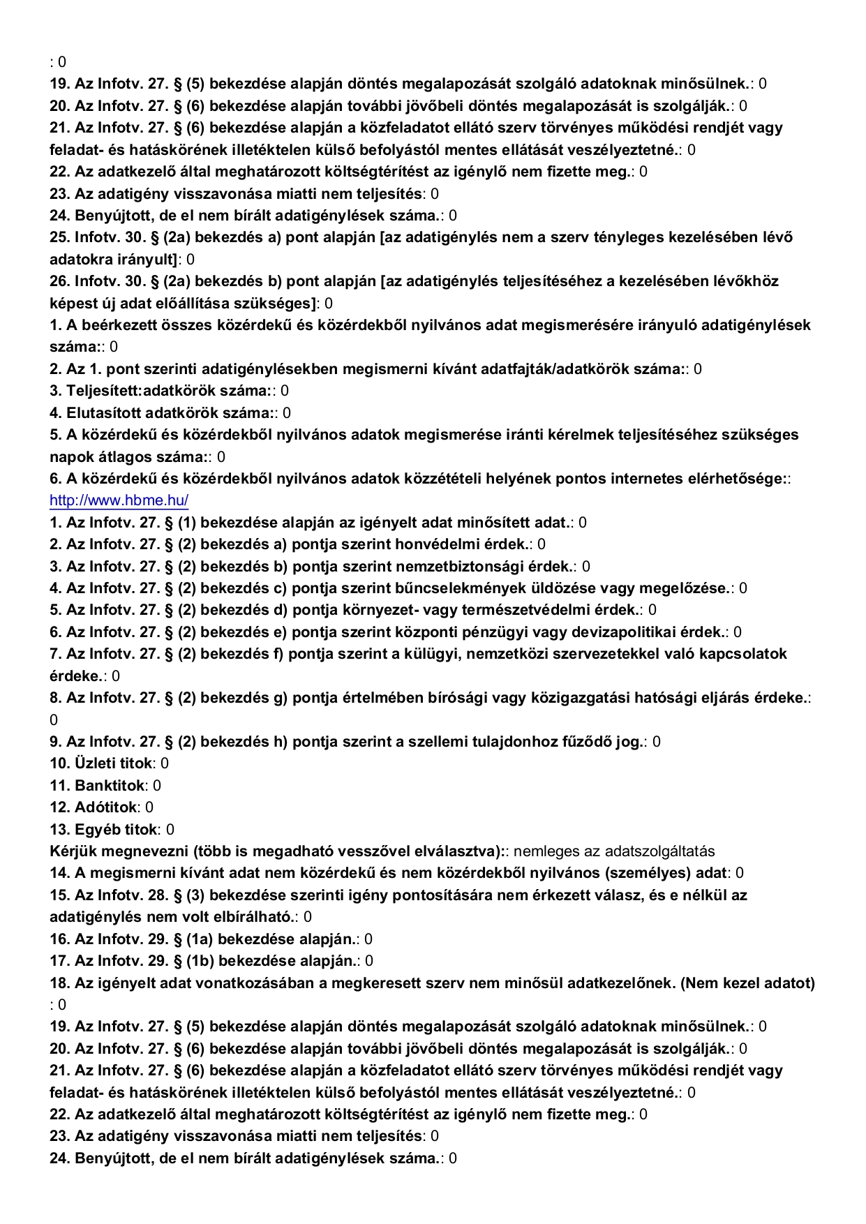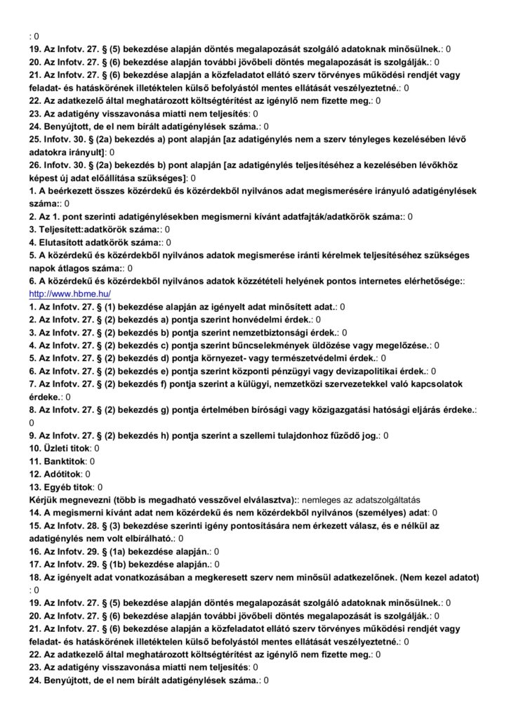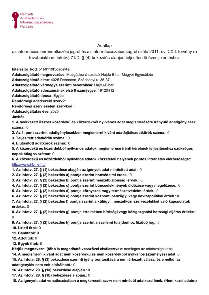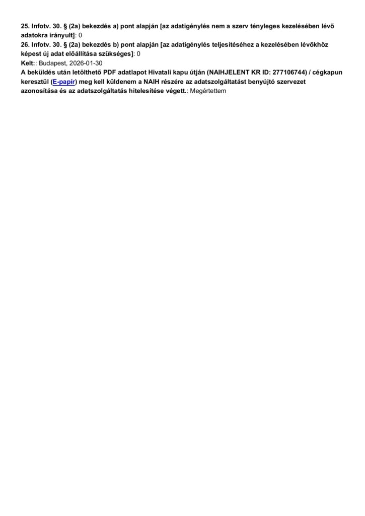 Közérdekű adatigénylés adatszolgáltatása 2025. év NAIH.